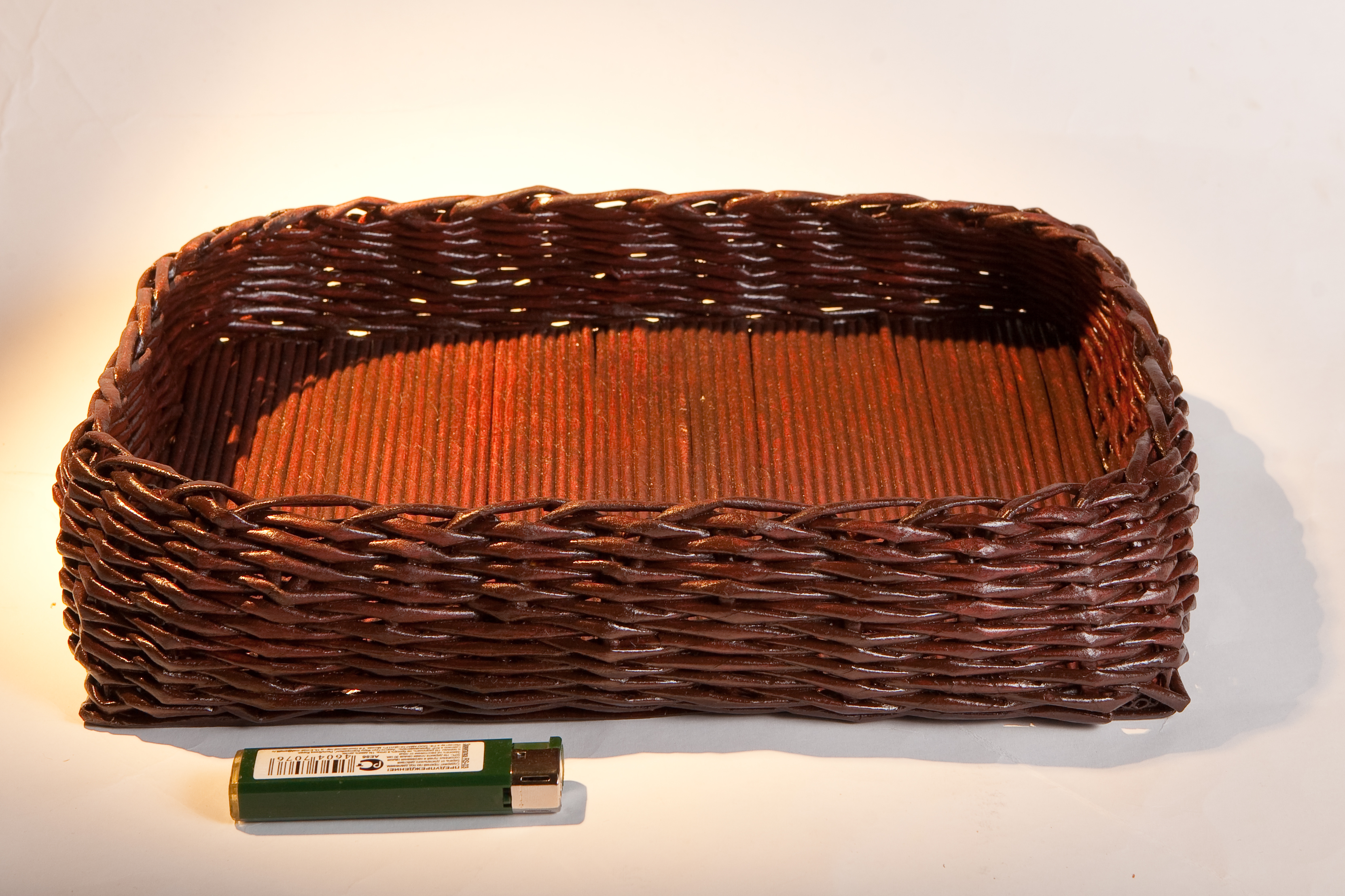 В изготовлении данного изделия применялись разные приёмы газетной техники, в итоге получился поднос под бытовые мелочи