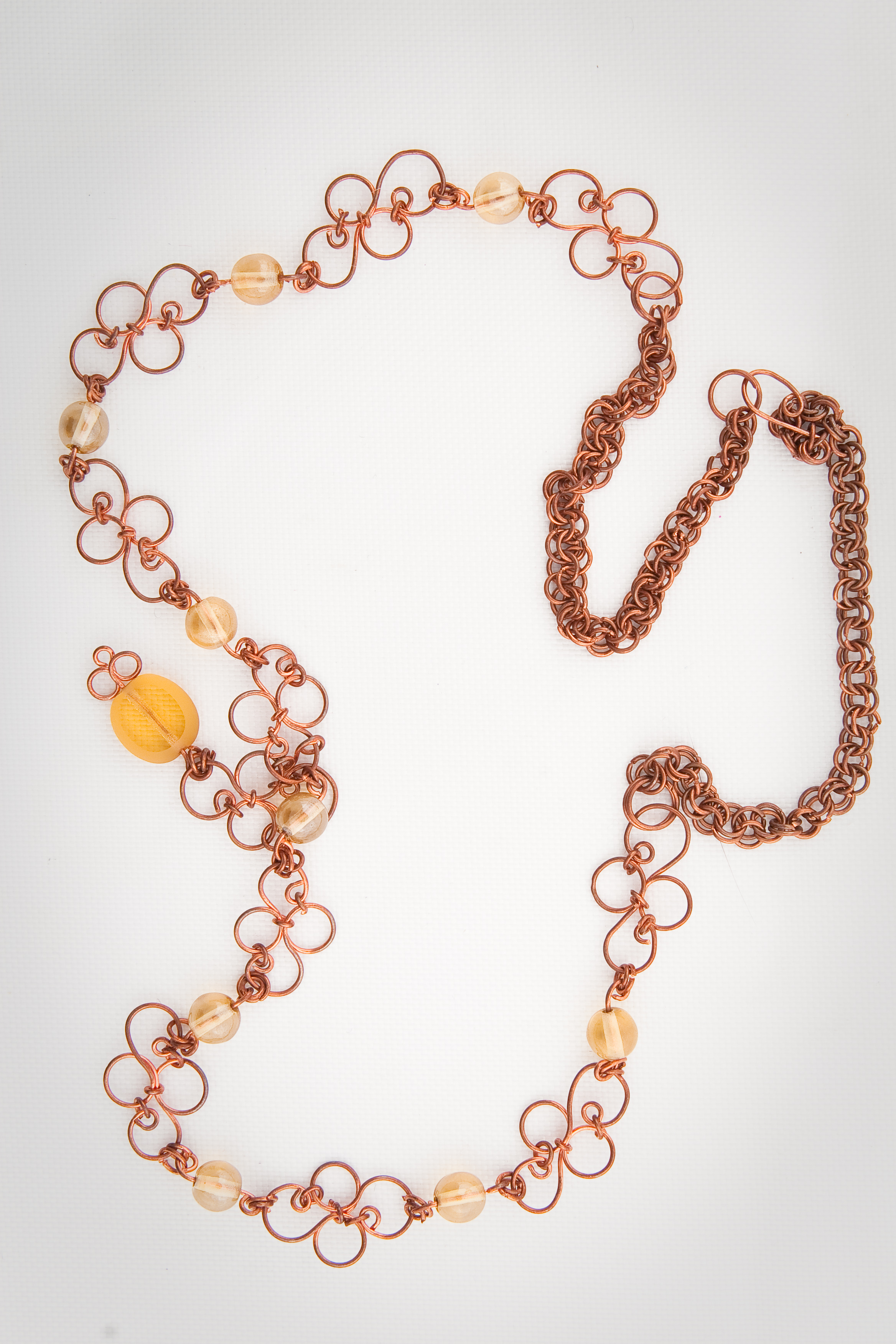 Об ожерелье смело можно сказть, что оно уникально. Полностью ручная работа, включая прочную цепочку из двойных колечек и застежку. Ни у кого, кроме Вас, такого не будет!