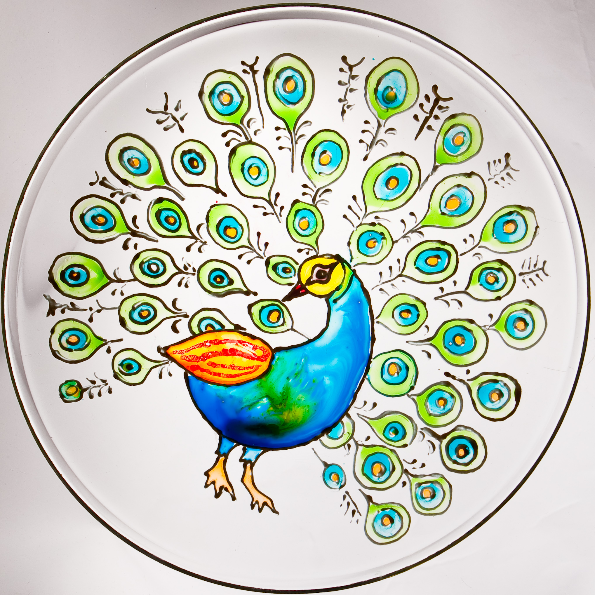 Материалы: витражные краски и контуры на органической основе