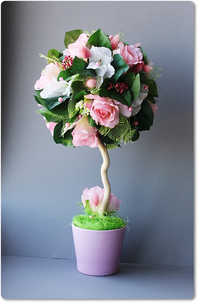 Материалы: Керамическое кашпо, искусственные цветы, сизаль, сухоцветы, бусины