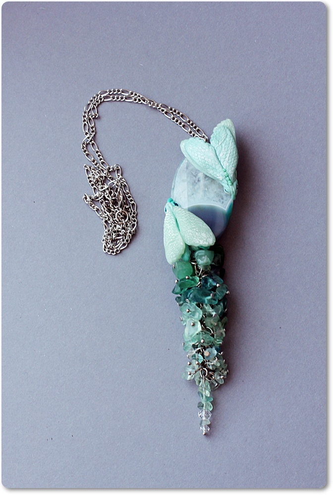 Материалы: Бусина серого агата, агатовая крошка, полимерная глина