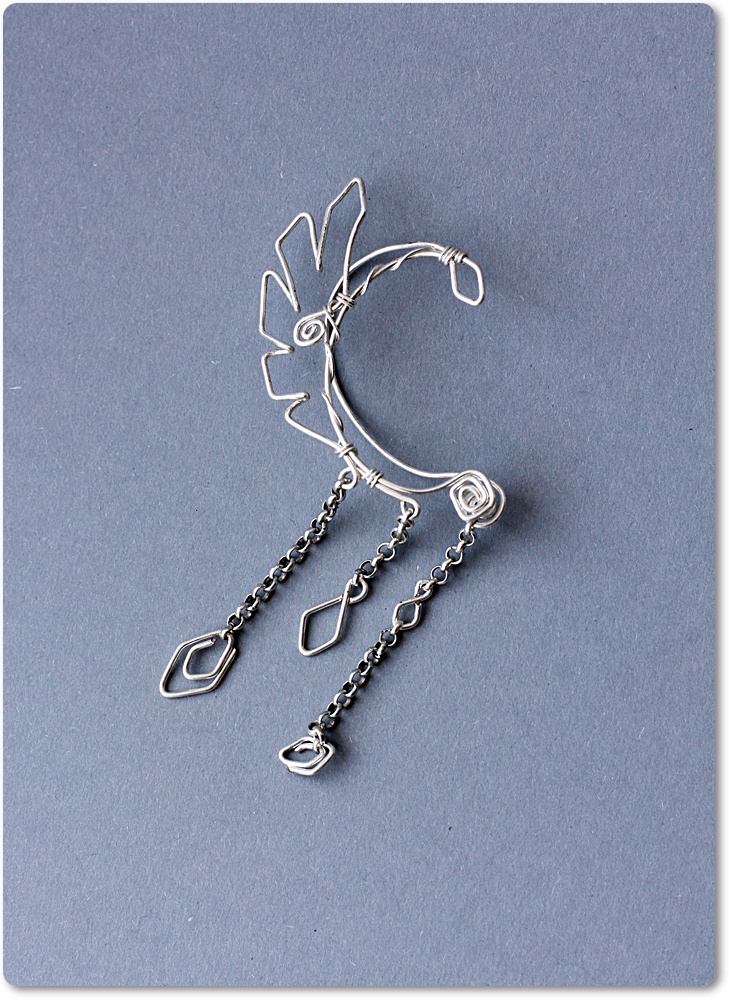 Материалы: Посеребрённая проволока, фабричная фурнитура