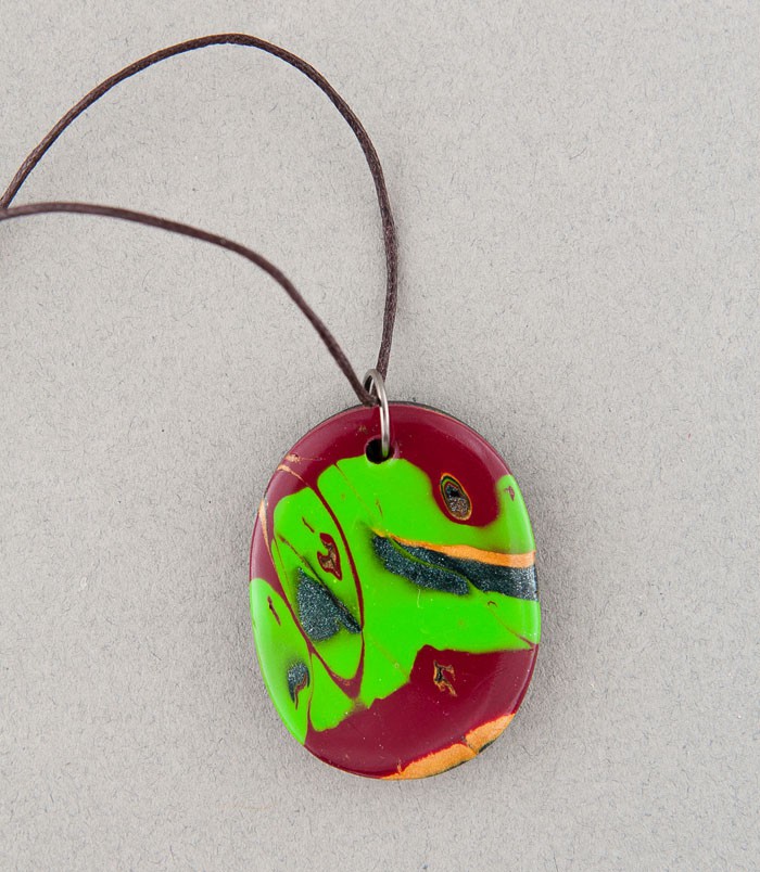Классическая техника работы с полимерной глиной (мокуме-гане) сделала этот кулон эксклюзивным, так как повторить подобный узор абсолютно невозможно. Предназначен исключительно для очень молодой девушки в возрасте от 14 до 99 лет!