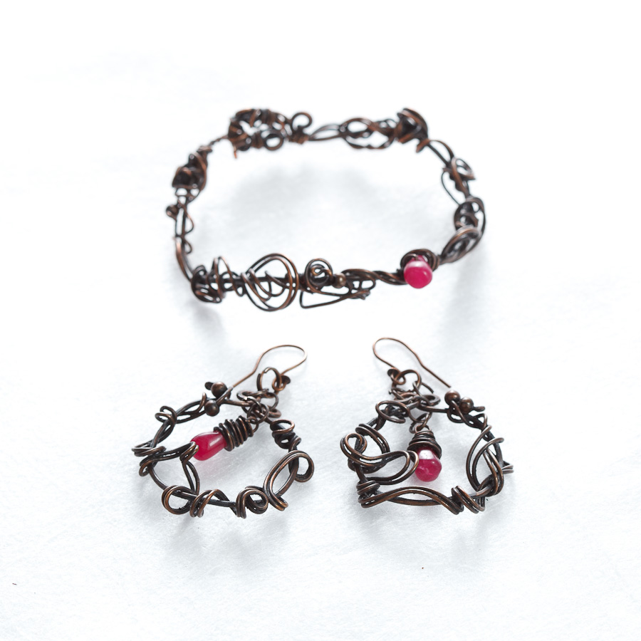 Размеры: длина серьги 5 см, браслет диаметром 6 см