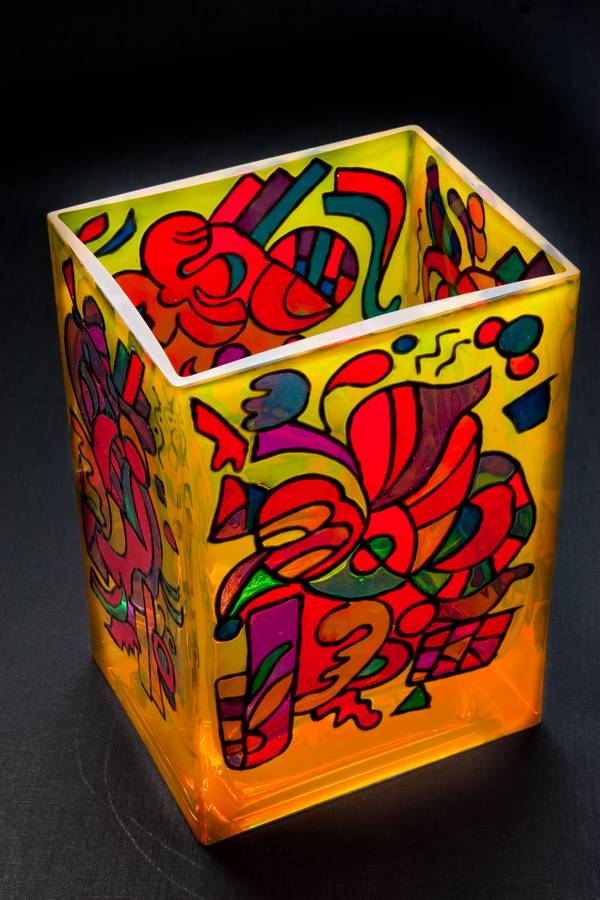 Материалы: ваза (Икея), витражные краски Pebeo, контур Pebeo