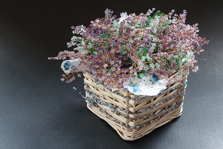 Материалы: Бисер, проволока, сухой оазис, текстиль, корзинка ИКЕЯ