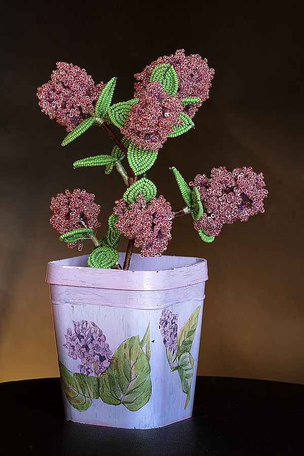 Техника: петли, французское круговое плетение, кашпо - декупаж