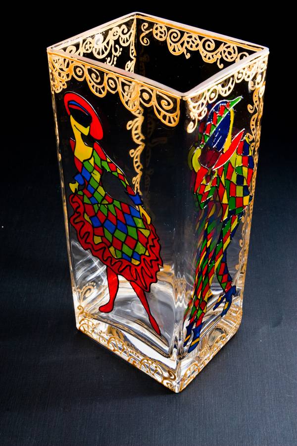 Материалы: ваза (Икея), витражные краски Pebeo, контур Pebeo