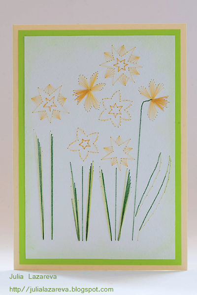 Материалы: дизайнерская бумага, бумага для акварели, мулине.
