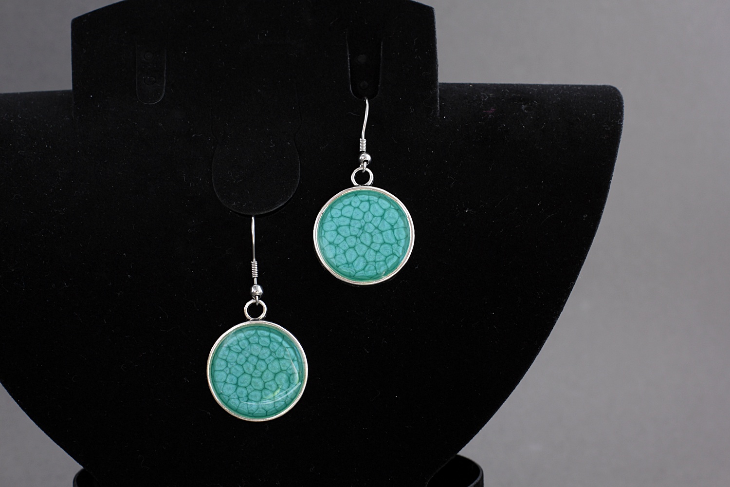Материалы: Бижутерный сплав, швензы из серебра, краски, эпоксидная смола.